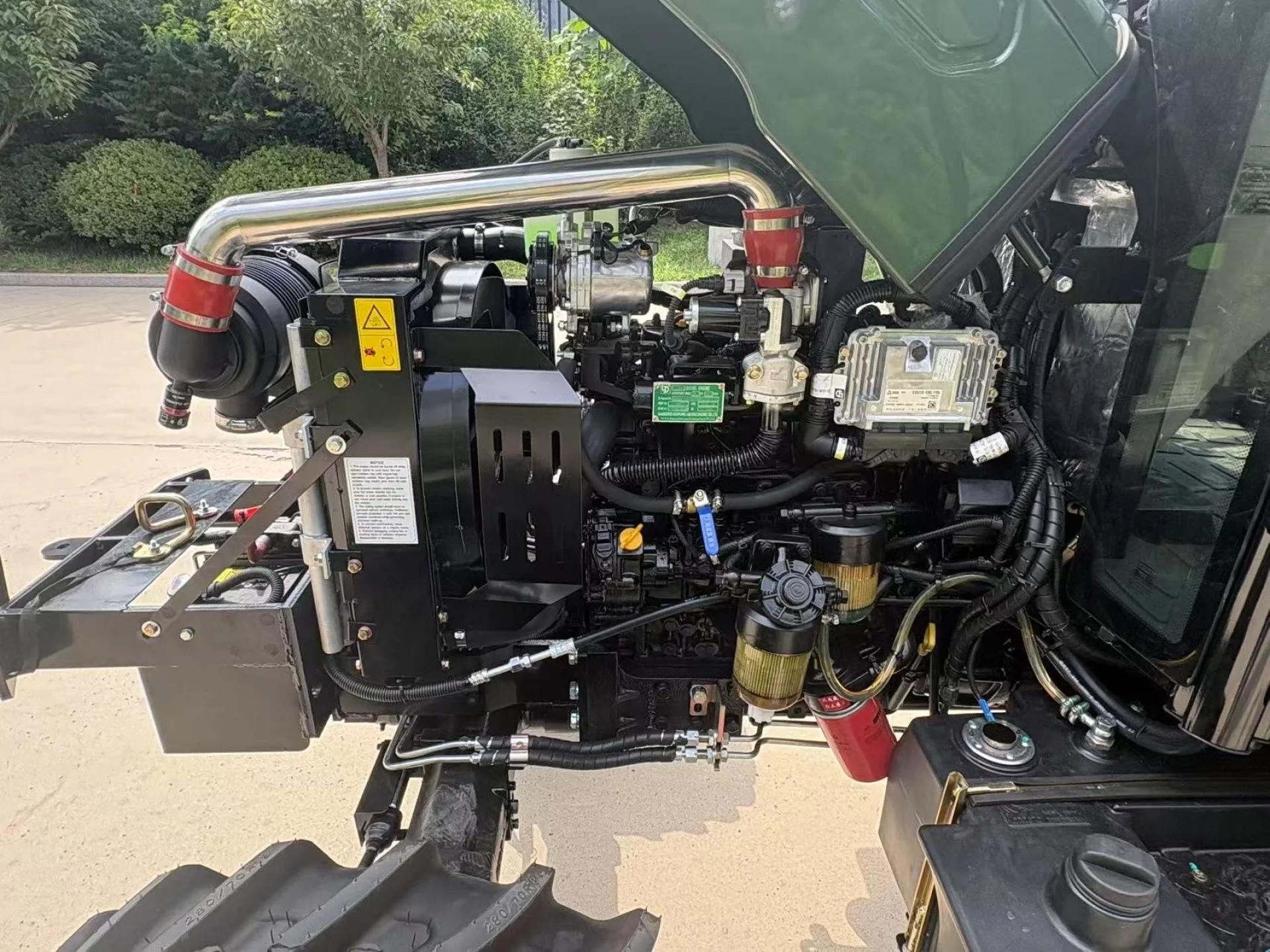 Tractorul este echipat cu un motor licențiat Perkins, conform standardului EU Stage V, asigurând consum redus de combustibil, emisii scăzute și fiabilitate ridicată în conformitate cu cele mai recente cerințe europene.